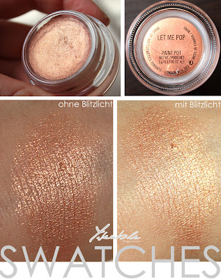 "Let Me Pop" is really a great sound and great for the coming summer and spring. A delicate peach with light copper strike and wonderful golden glitter - just awesome! Take my eyes really nice shine. Use it as a base, but yesterday I only used as eyeshadow, looks great and is incredibly fast! As a base he brings the eye shadow really add sparkle and glitter of gold is not lost.